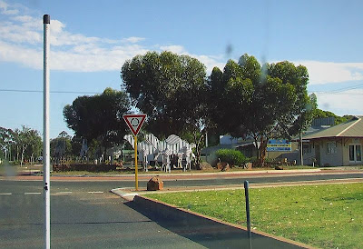 I have mentioned before that the mind plays funny tricks when it is bemused bylong distance travels, here a bottle tree has been created at the roads edge.